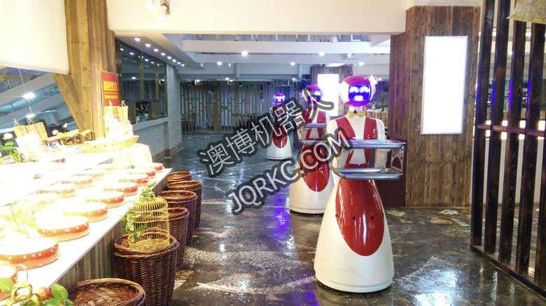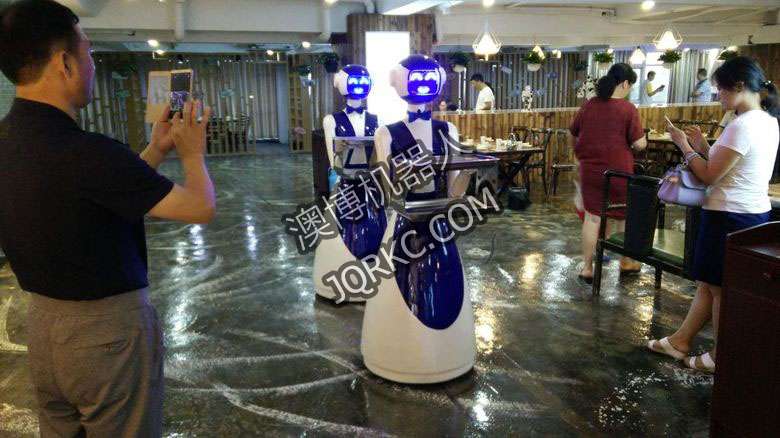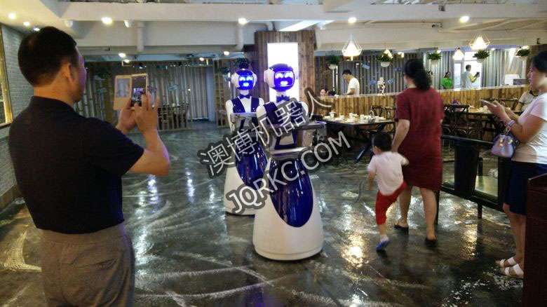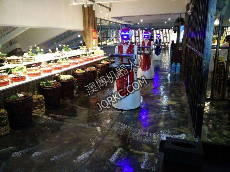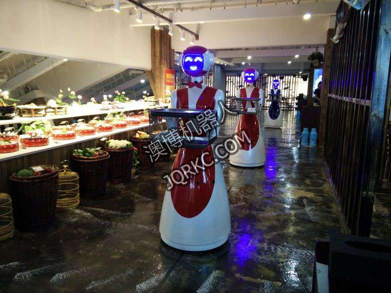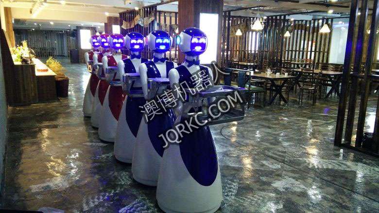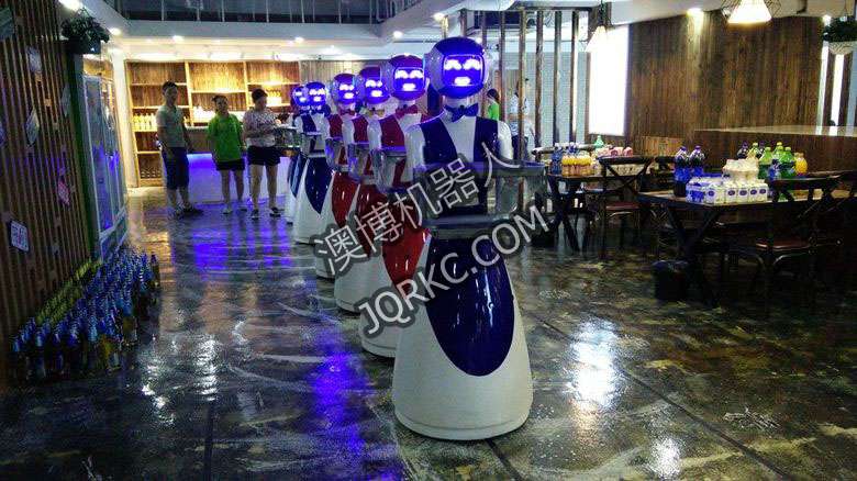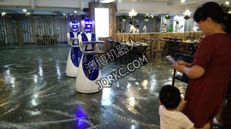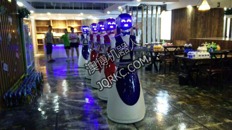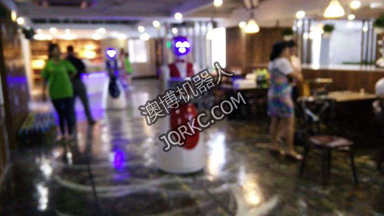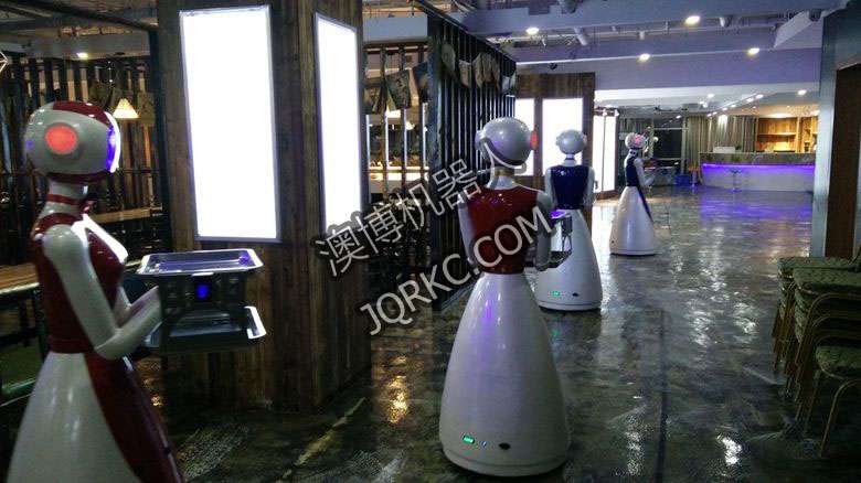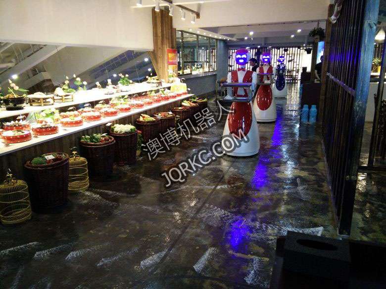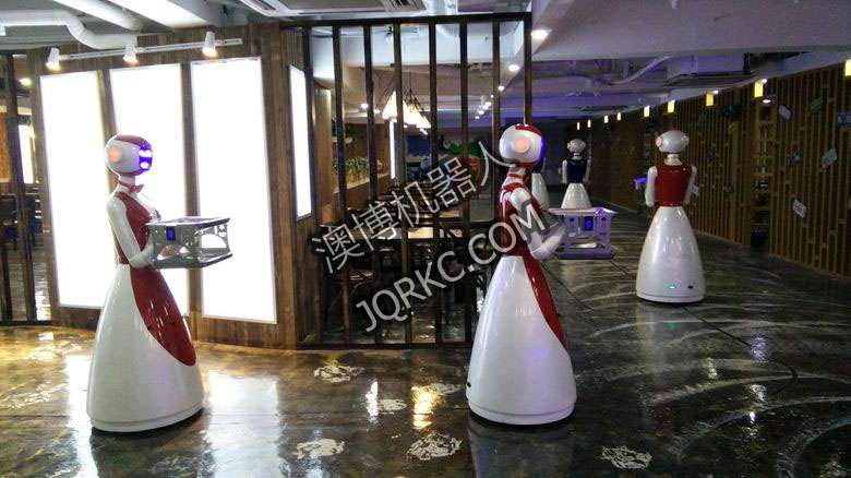 機(jī)器人餐廳使用六臺(tái)送餐機(jī)器人現(xiàn)場(chǎng)