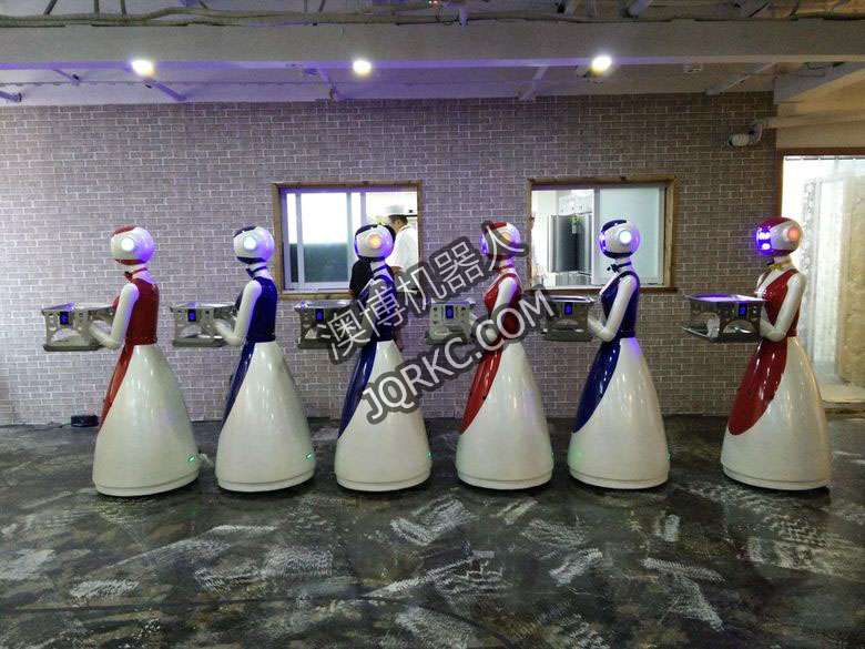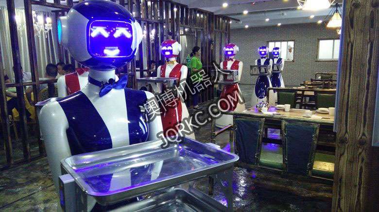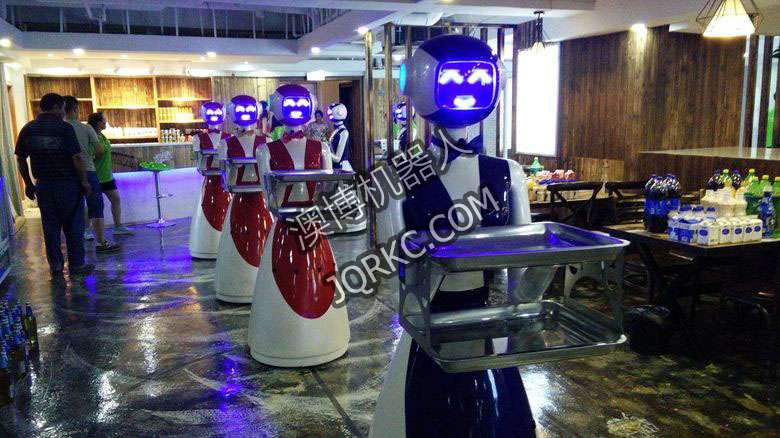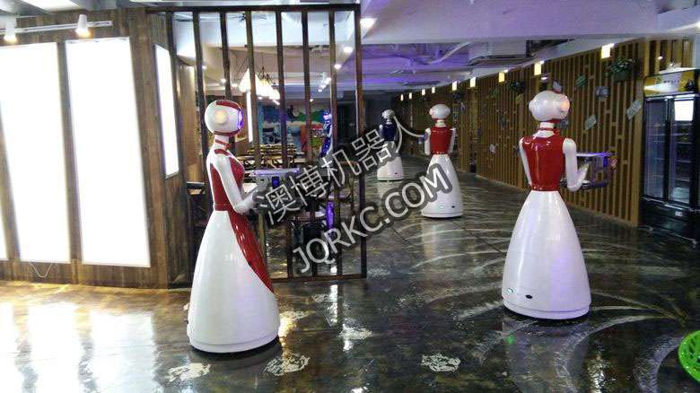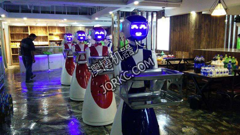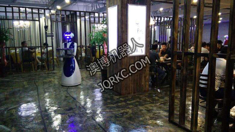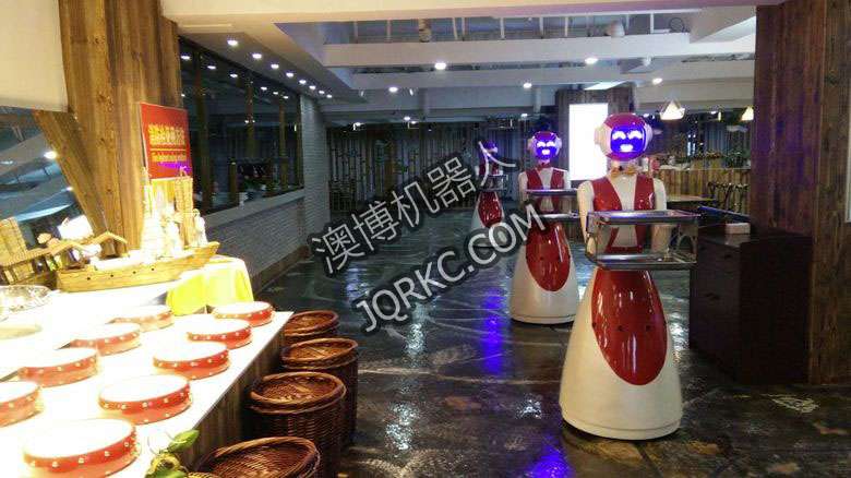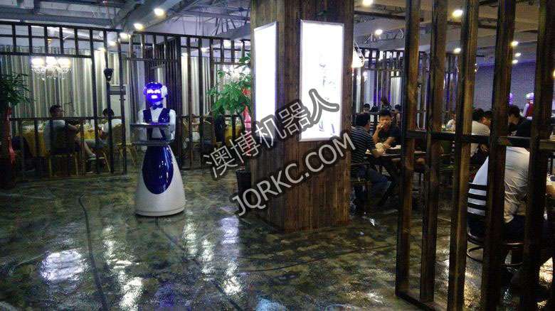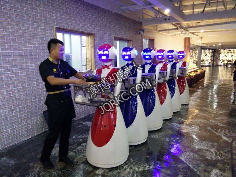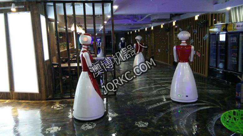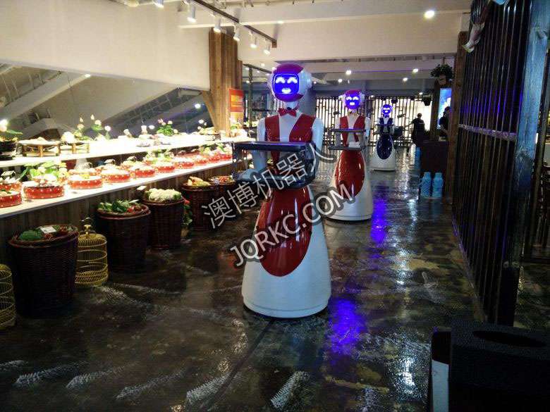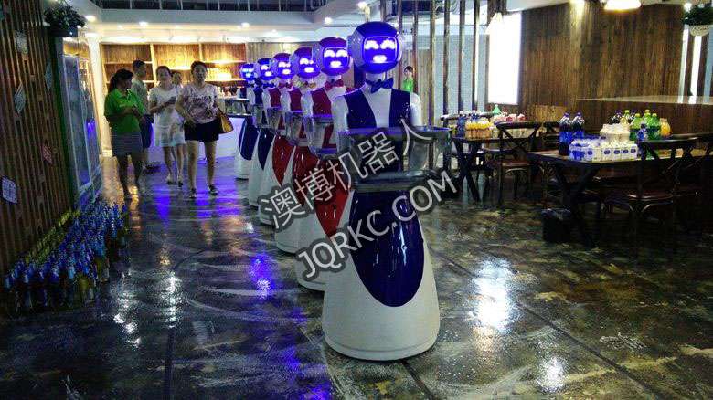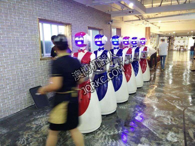 機(jī)器人餐廳使用六臺(tái)送餐機(jī)器人現(xiàn)場(chǎng)