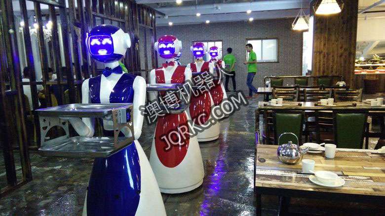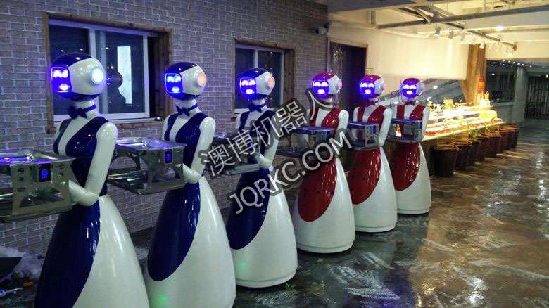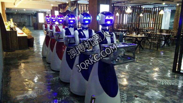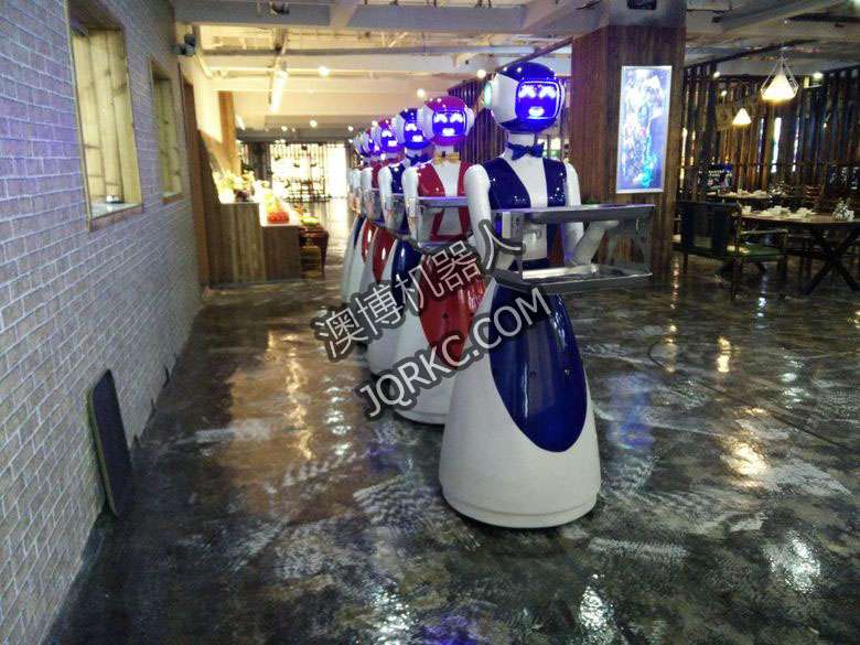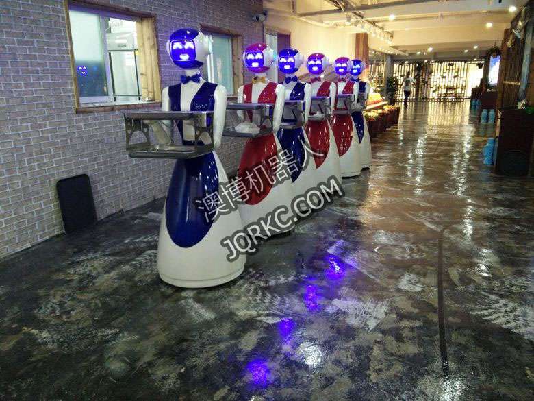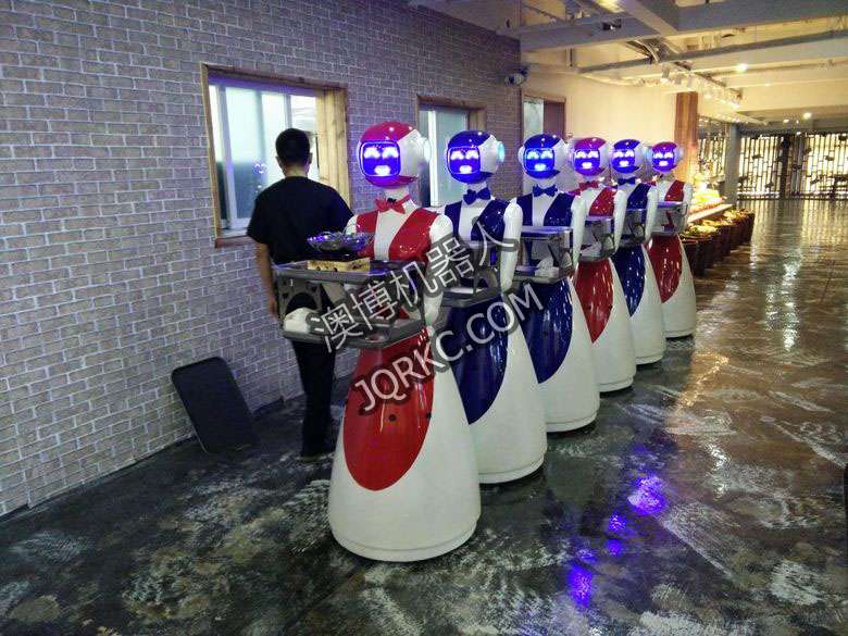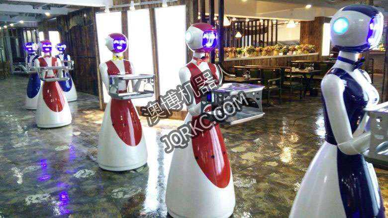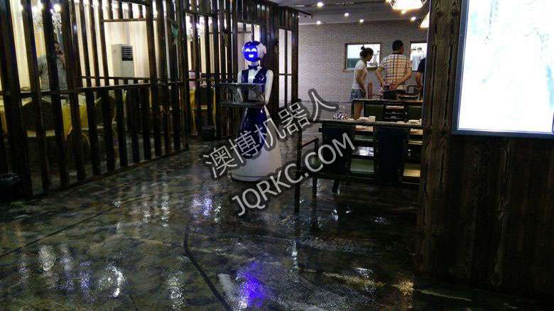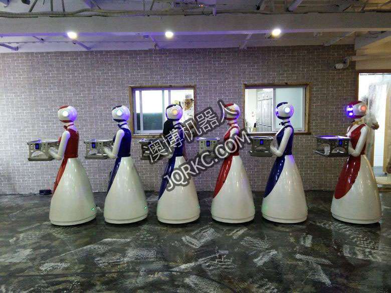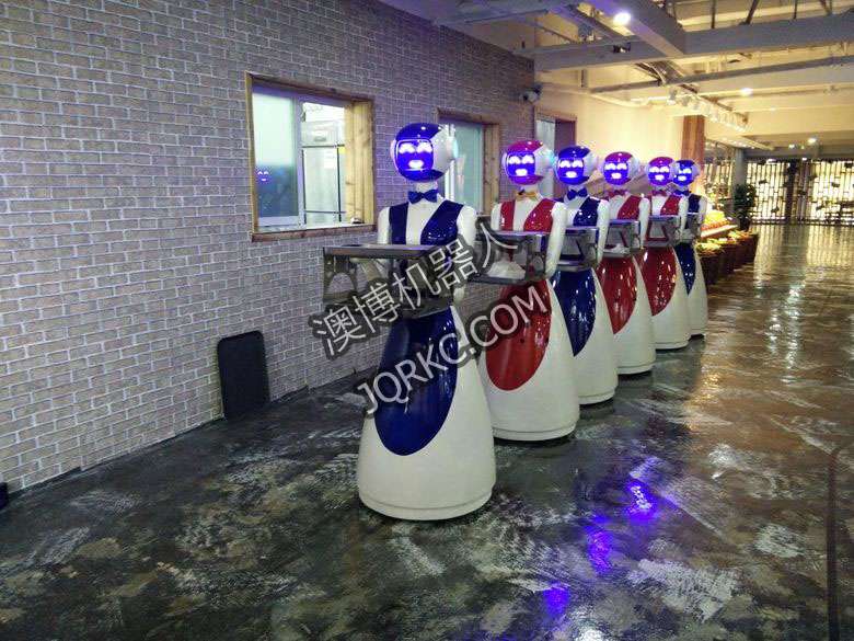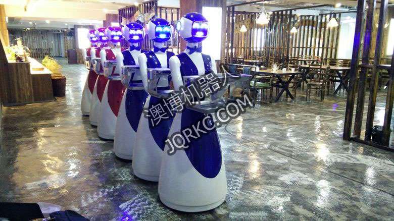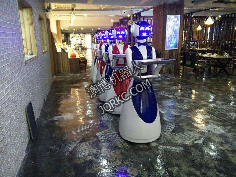 機(jī)器人餐廳使用六臺(tái)送餐機(jī)器人現(xiàn)場(chǎng)