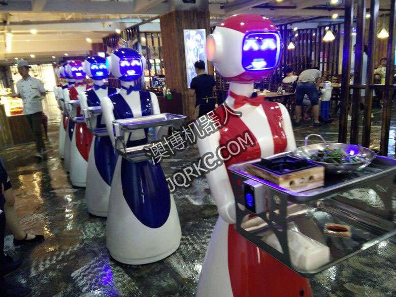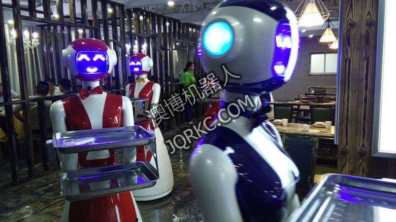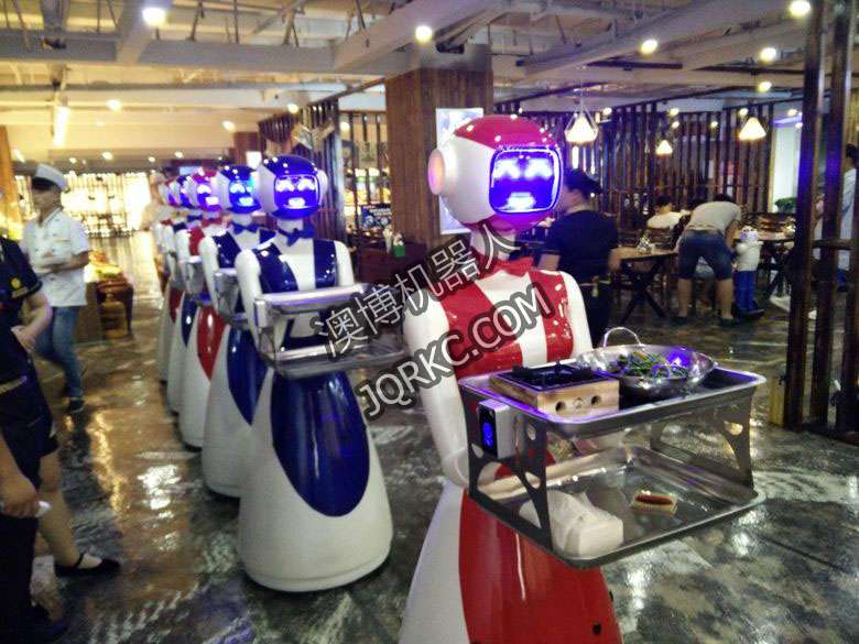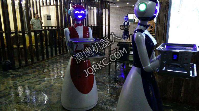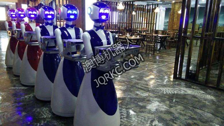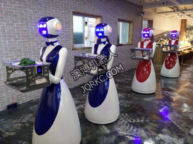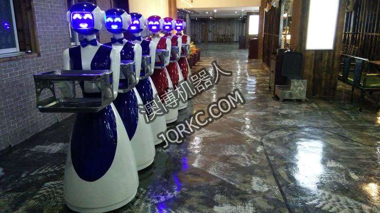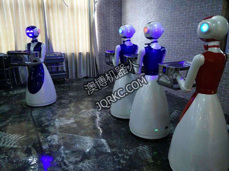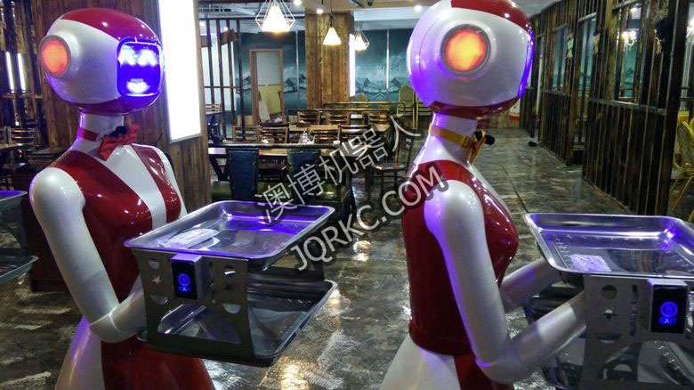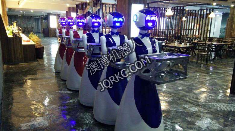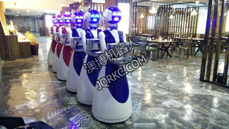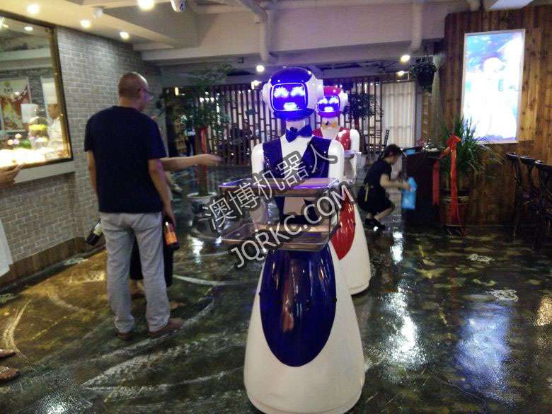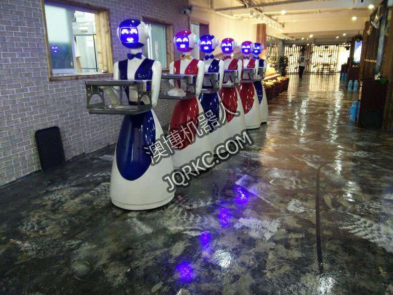 機(jī)器人餐廳使用六臺(tái)送餐機(jī)器人現(xiàn)場(chǎng)