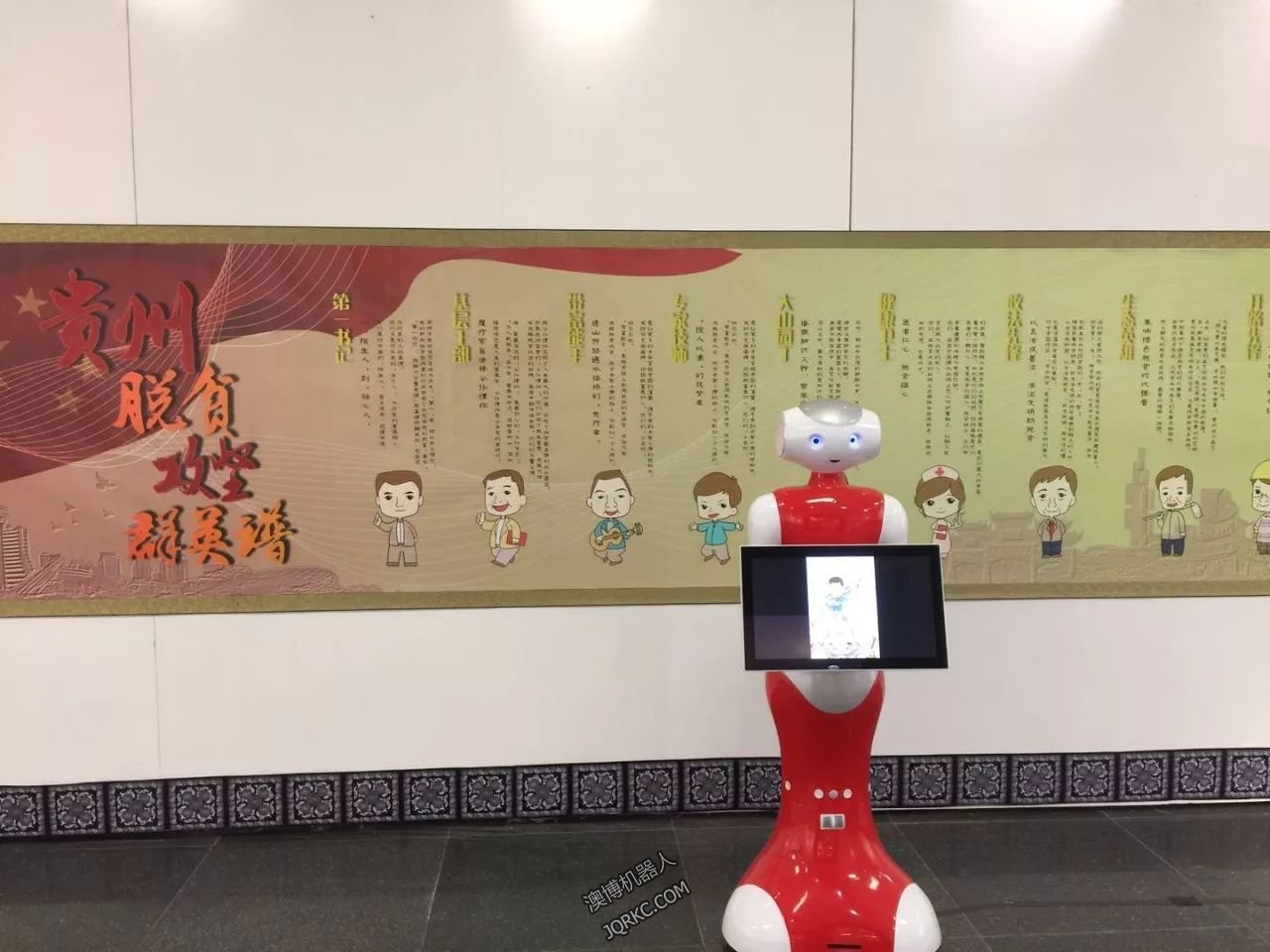 由貴州省委宣傳部主辦的貴州脫貧攻堅群英譜漫畫展在11日正式開展,本次畫展是由全國漫畫愛好者以及貴州青少年創作的貴州脫貧攻堅群英譜漫畫作品。澳博機器人佩佩被特聘為機器人講解員