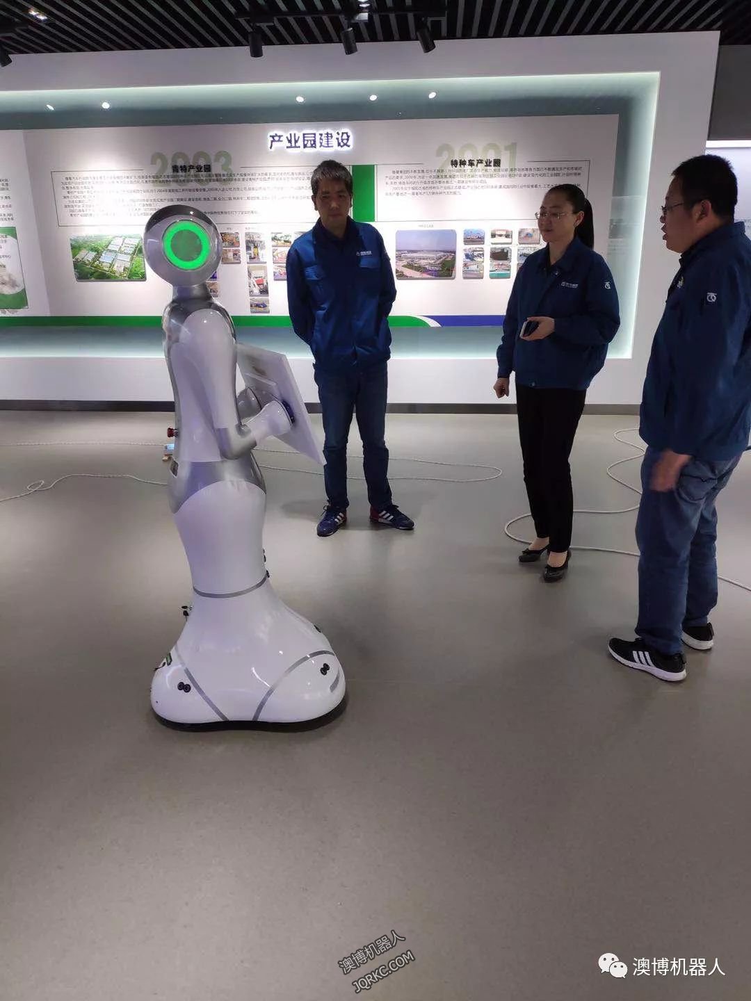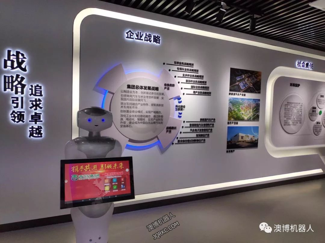 就在近期,青特集團引進澳博機器人,機器人佩佩在青特集團展廳擔任講解員,通過機器人的表現形式向人們更好的展示青特集團的企業文化、企業資訊,機器人佩佩在現場的工作也獲得了人們的一致好評。