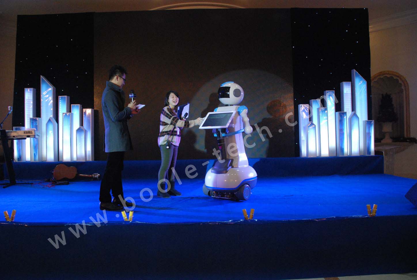 主要功能語(yǔ)音播報(bào)語(yǔ)音講解語(yǔ)音交互。可結(jié)合實(shí)際需要輸入需要播報(bào)、講解、交互的各種專業(yè)信息,眼睛和嘴部由LED燈組成,說(shuō)話時(shí)LED等會(huì)亮亮起,配合語(yǔ)音內(nèi)容做出各種表情,可愛活潑,惹人喜愛,胸前液晶顯示屏?xí)峁┎?bào)講解的文字內(nèi)容。