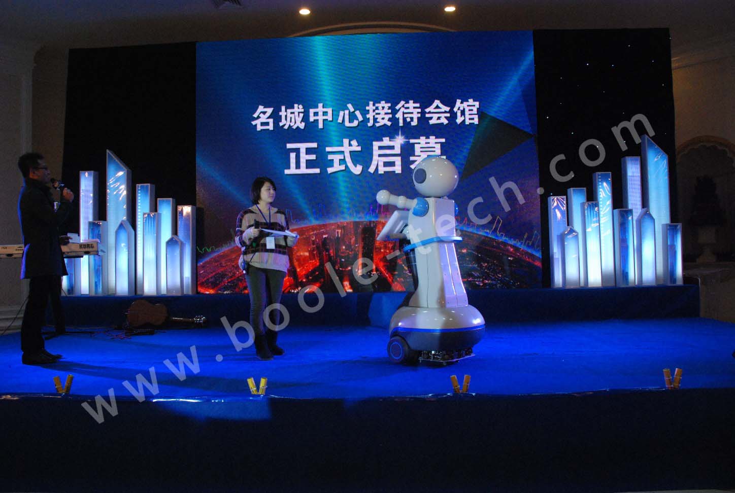 2013112號(hào),福州東方名城中心地產(chǎn)招商儀式啟動(dòng),東方名城地產(chǎn)總裁與太空迎賓機(jī)器人互動(dòng)揭開開幕式!