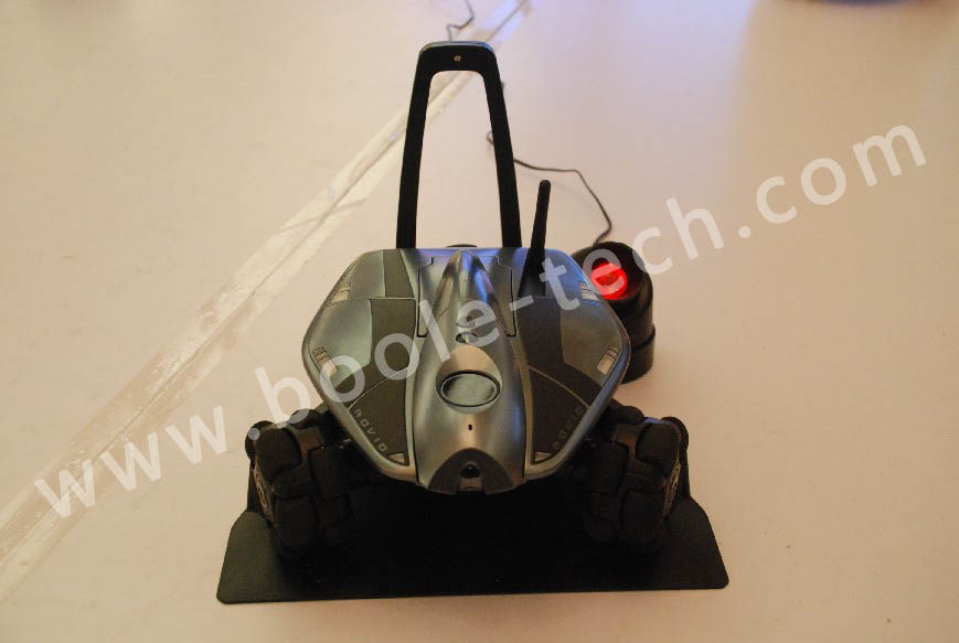 監控機器人,通過手機,平板電腦或者電腦連接監控機器人發射出來的無線信號,監控機器人前面有個高清攝像頭,可以把實時的影像傳輸到你的無線設備,而且它能在低電量的時候自動回到基座內自行充電。
