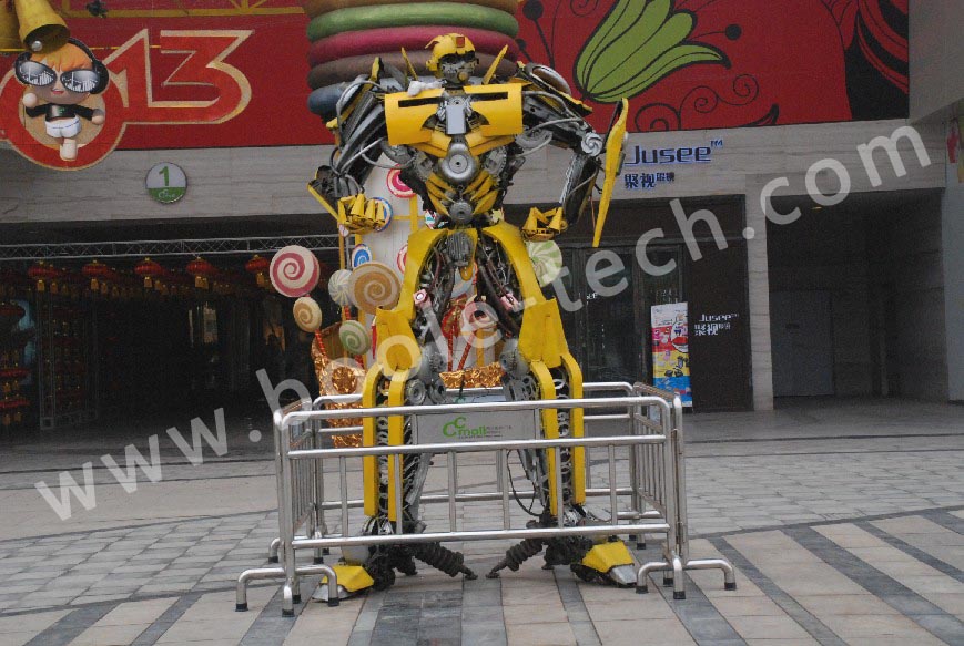 23高的大型的變形金剛,《變形金剛》電影讓大家對機器人充滿了憧憬,而大黃蜂和擎天柱更是人們的偶像,它們外形逼真,酷炫的燈飾,以及定制的人機對話。