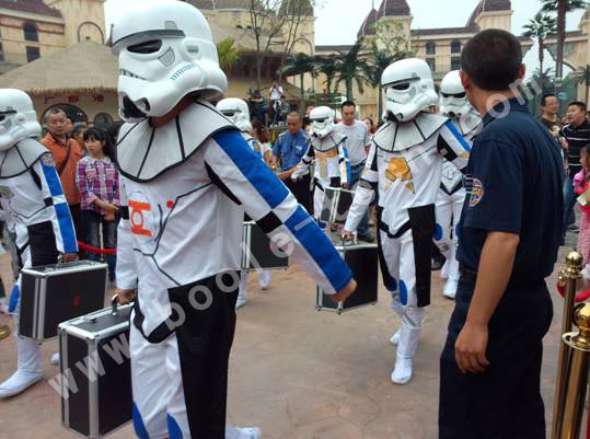 由于地球人類的人多勢眾,最終將“外星入侵者”趕出了地球,取得了地球保衛(wèi)戰(zhàn)的勝利,隨著“外星BOSS”不甘的發(fā)出一聲“我們還會再來的”后星球大戰(zhàn)即告結(jié)束。活動結(jié)束后,孩子們爭先恐后的和外星戰(zhàn)士合影留念,高科技的表演讓孩子們仿佛置身于夢幻的星際現(xiàn)場,使他們度過了一個特別的兒童節(jié)。