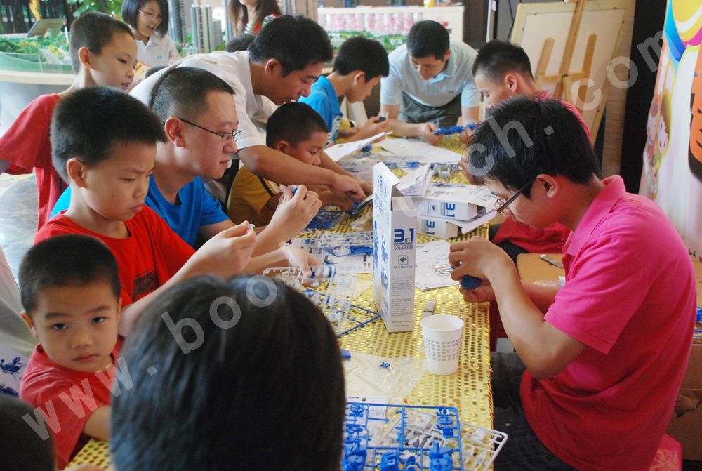 除了機器人大跳江南style外,現場還設立了DIY互動區,游客們可以親手組裝機器人,體驗歡樂有趣的過程,把組裝好的機器人帶回家,孩子們都顯得特別有成就感。
