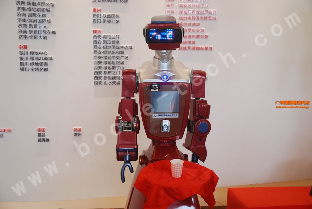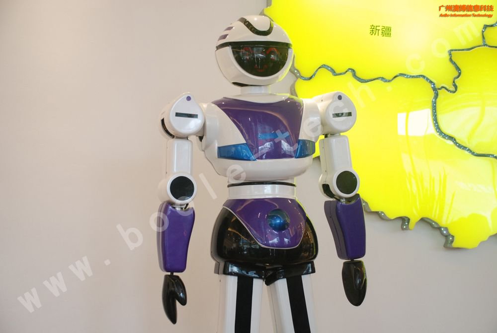 該機器人擁有基本的迎賓互動功能,能與游客打招呼,導覽,與人語音對話互動,靈活的雙手還能代替工作人員派傳單呢!